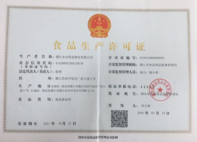 潛江永安藥業(yè)股份有限公司成立于2001年,坐落于江漢平原腹地潛江市國(guó)家高新技術(shù)產(chǎn)業(yè)開發(fā)區(qū),占地500余畝,注冊(cè)資金貳億玖仟肆佰陸拾捌萬貳仟伍佰元整,是一家擁有自主知識(shí)產(chǎn)權(quán)的國(guó)家高新技術(shù)企業(yè)。公司股票于2010年3 月5日在深圳證券交易所掛牌上市(股票代碼為002365)。公司具有雄厚的技術(shù)開發(fā)能力,是湖北省創(chuàng)新型企業(yè)和湖北省知識(shí)產(chǎn)權(quán)建設(shè)示范企業(yè)。公司研發(fā)平臺(tái)分別被認(rèn)定為省級(jí)企業(yè)技術(shù)中心和湖北省功能性食品添加劑工程技術(shù)研究中心。 經(jīng)過多年的發(fā)展,公司形成了以食品及藥品添加劑牛磺
